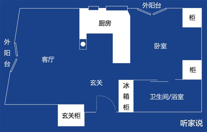 【承重柱在蜗居中间,切分客厅厨房】